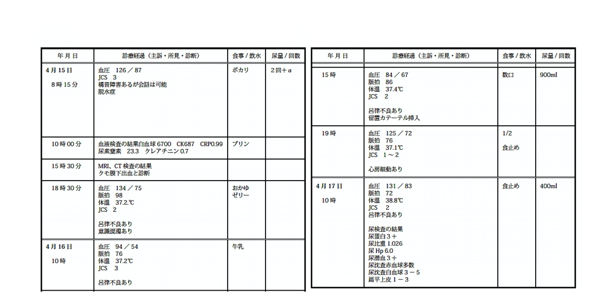 診療経過一覧表の一例